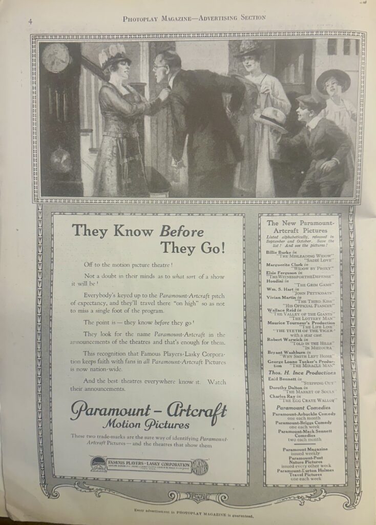- Paramount Artcraft Feature Ad that includes The Grim Game [page 4]